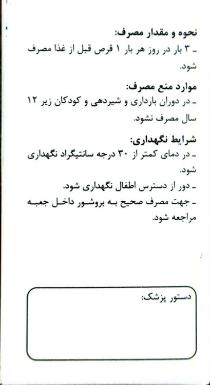 شکل دارو: به صورت قرص گیاهی ۷۰۰ میلیگرمی