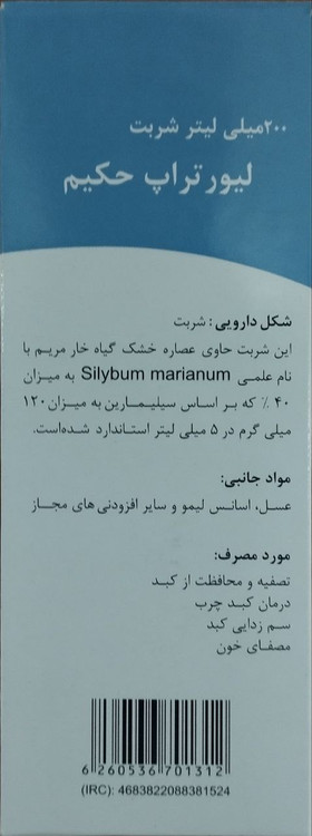این شربت حاوی عصاره خشک گیاه خار مریم به میزان ۴۰ درصد که بر اساس سیلی مارین استاندارد شده است به میزان ۲۰۰ میلیگرم در ۵ میلی لیتر شربت میباشد.