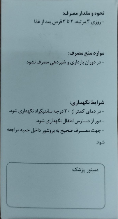 شکل دارو: به صورت قرص گیاهی ۵۰۰ میلیگرمی بدون روکش